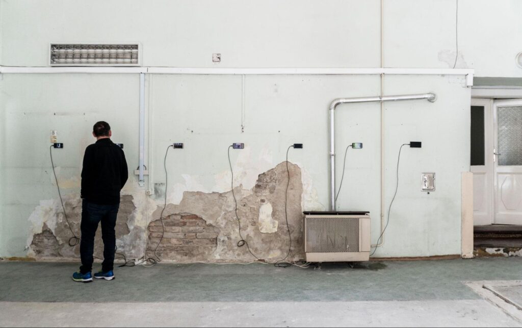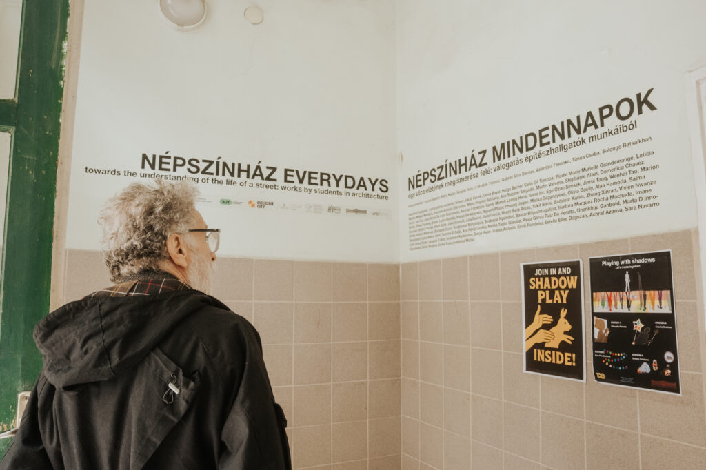 Micro-documentaries on Everyday Streetlife was another installation that presented a selection of short videos students captured about life details on the pavements of Népszínház street. Seven reused smartphones played observations simultaneously about topics such as body language of people, daily rhythms of walking, acts of entering and leaving the street, how people cross the street, how people rest in the street, and how people work on the street. Such an exercise is aimed at making students focus on and structure their experience of everyday, mostly overlooked phenomena that take place in the built environment, for the design of which they will be responsible in their professional career. Videos presented in the exhibition can be viewed here: kiállítás_street_videók