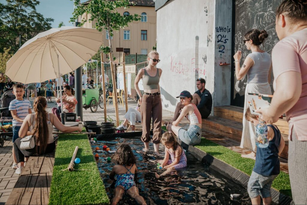 The interventions as objects were low-cost, simple, and less relevant than the activities they triggered, not just during but before and after their operation. In case of the Szeszgyár köz festival, for instance, students found out that there is no adequate water supply at the site to fill the pool, so they asked for help from local entrepreneurs and received unexpected support from the community of Gólya, who made a cargo bike available for the students to carry several buckets of water from their place. After the event’s closure in the evening, children who used the pool helped dismantle it, and they irrigated the plants of the square with the remaining water. As a result, the project is not regarded as the celebration of a special object but as a series of activities where many people – from local children and their parents to university students and members of NGOs – cooperated for the same purpose: to make an event happen that they regard as a meaningful and enjoyable contribution to the place where they live.
