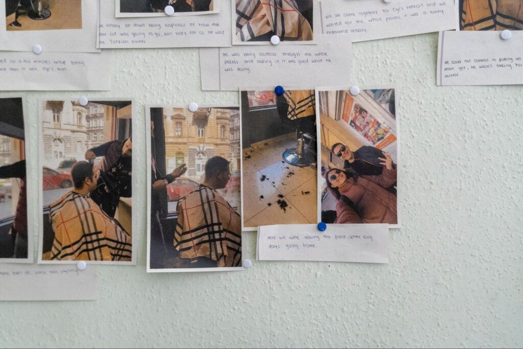 The central installation of the exhibition was entitled WHAT CAN THE STREET GIVE YOU? – Discovering Products and Services of Népszínház Street. One side of the main space was covered with photos and textual notes from students during their interviews and visits to 18 local shops and services at Népszínház street. Students were not only passive observers and interviewers but they also took the challenge of trying out the services offered by local entrepreneurships: among others they made their hair cut in a Turkish barber shop; made their nails painted in a Chinese manicure saloon; made their laundry washed in an Indian laundry shop, and received an insight into their future through Tarot cards by a Hungarian fortune teller. Through these encounters, students had the opportunity to gain rich, first-hand insights from street life. Video documentation of the explorations and interviews: