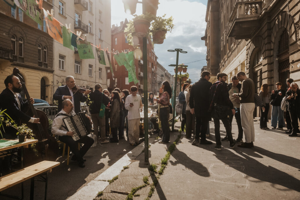 In addition to the projects inside, several activities took place outside of the Post Office transforming the street into a crowded meeting spot: concerts of local folk musicians, gastronomic performances of students, guided urban walks, onsite surveys coordinated by the team of Rév8 among others kept the street lively in an unexpected way for whole weekend providing a platform for a heterogenous audience from the residents of the nearby temporary shelter to the local and international intellectual visitors of the Budapest100 program to share space and time together.