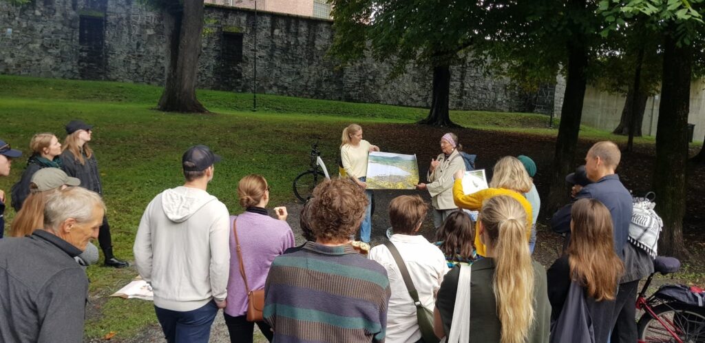 In the Unseen City Walks, our aim was to open up a dialogue with local residents and experts on what is considered unacceptable to take up space in the city. The walks were about making visible what is conventionally ‘unacceptable,’ and opening up a dialogue about what is and is not ‘allowed’ to belong within a 15 minute city. Each walk was led by an expert in one of the unseen city elements. These unseen elements included urban ‘nature’ life (led by the Norwegian Botanical Association), blue collar or production work in the city (led by Fragment), the buried rivers (led by the Oslo River Forum), edible plants in urban space (led by the foraging non-profit Sanke), and people who have suffered from homelessness or substance abuse challenges (led by the forum for a more human drug policy’s company Gatestemmer).
